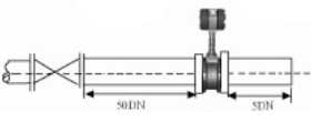 6.調節閥的安裝 如果流量計前后需要安裝調節閥,要保證流量計的前直管段≥25D,后直管段≥5D |