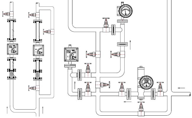 五、金屬管浮子流量計安裝示意圖: